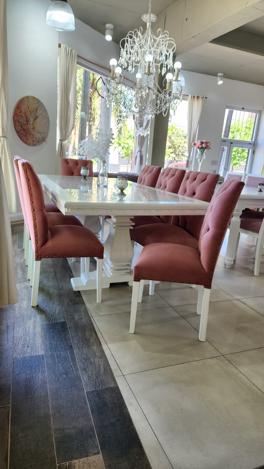 Juego de Comedor Mesa Victoria mas 6 sillas Curvas y 2 cabeceros