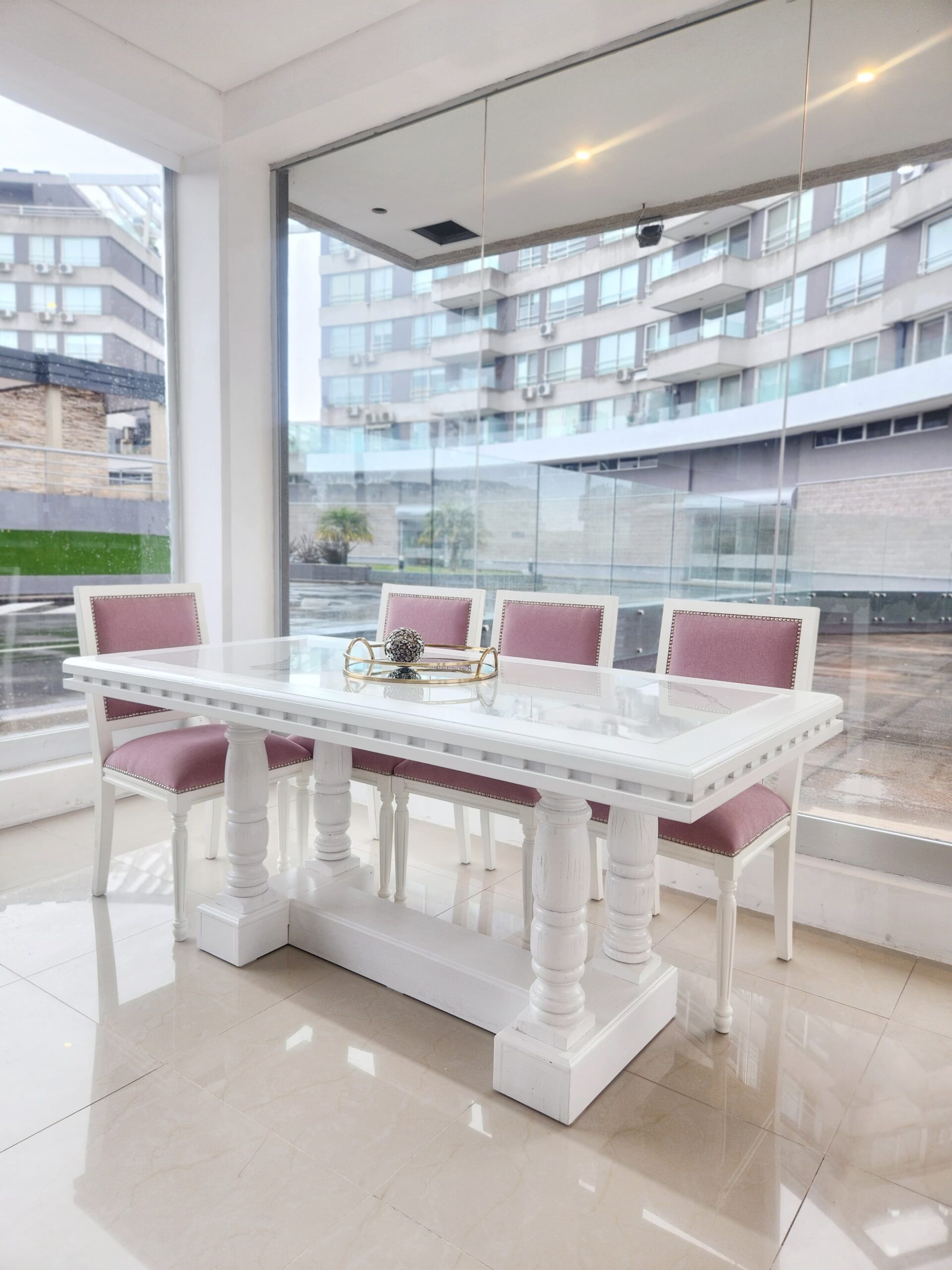 Mesa hecha íntegramente en madera maciza de paraíso estacionado, decapada con proceso de poliuretano, repelente a líquidos ‼️