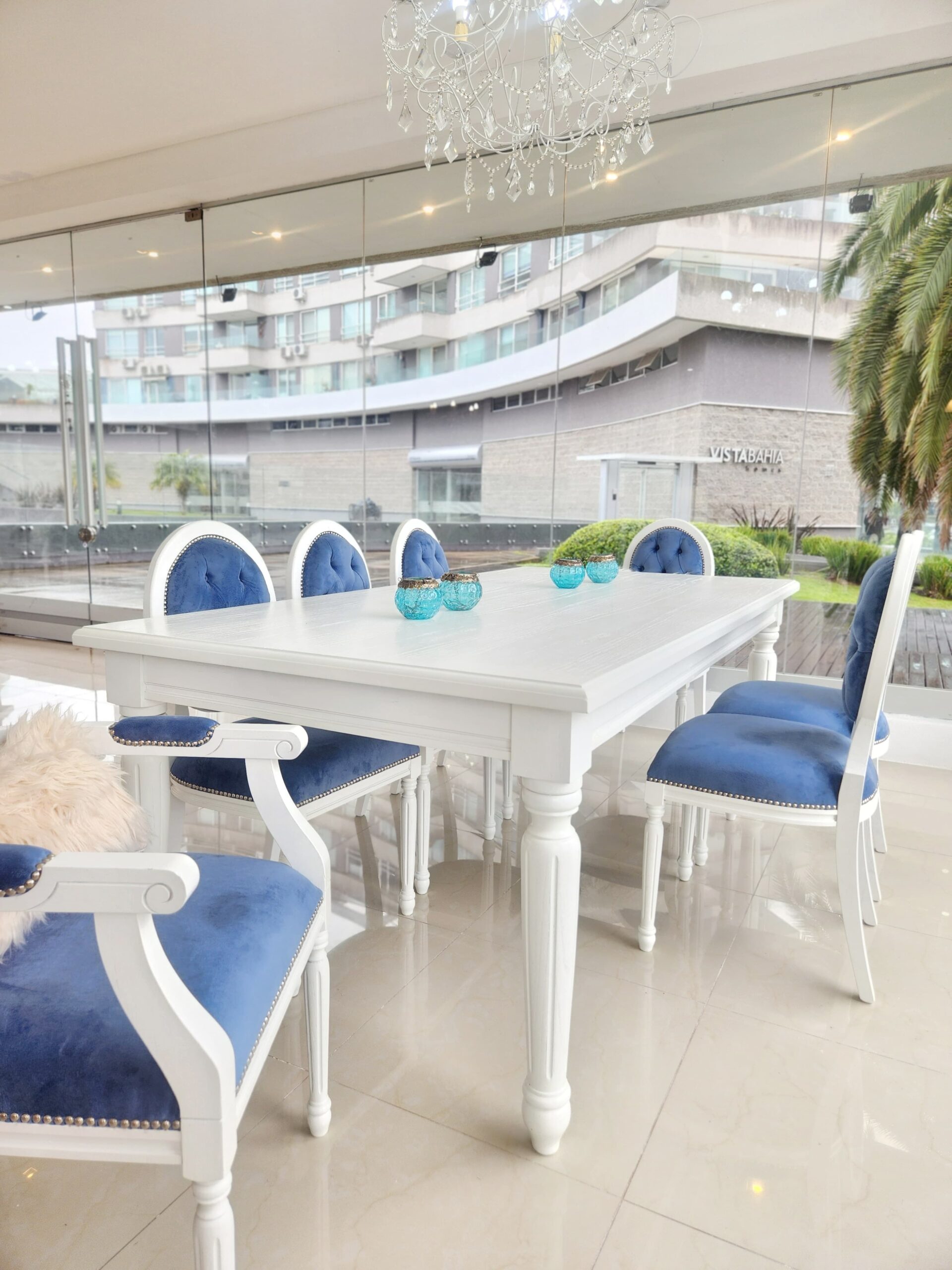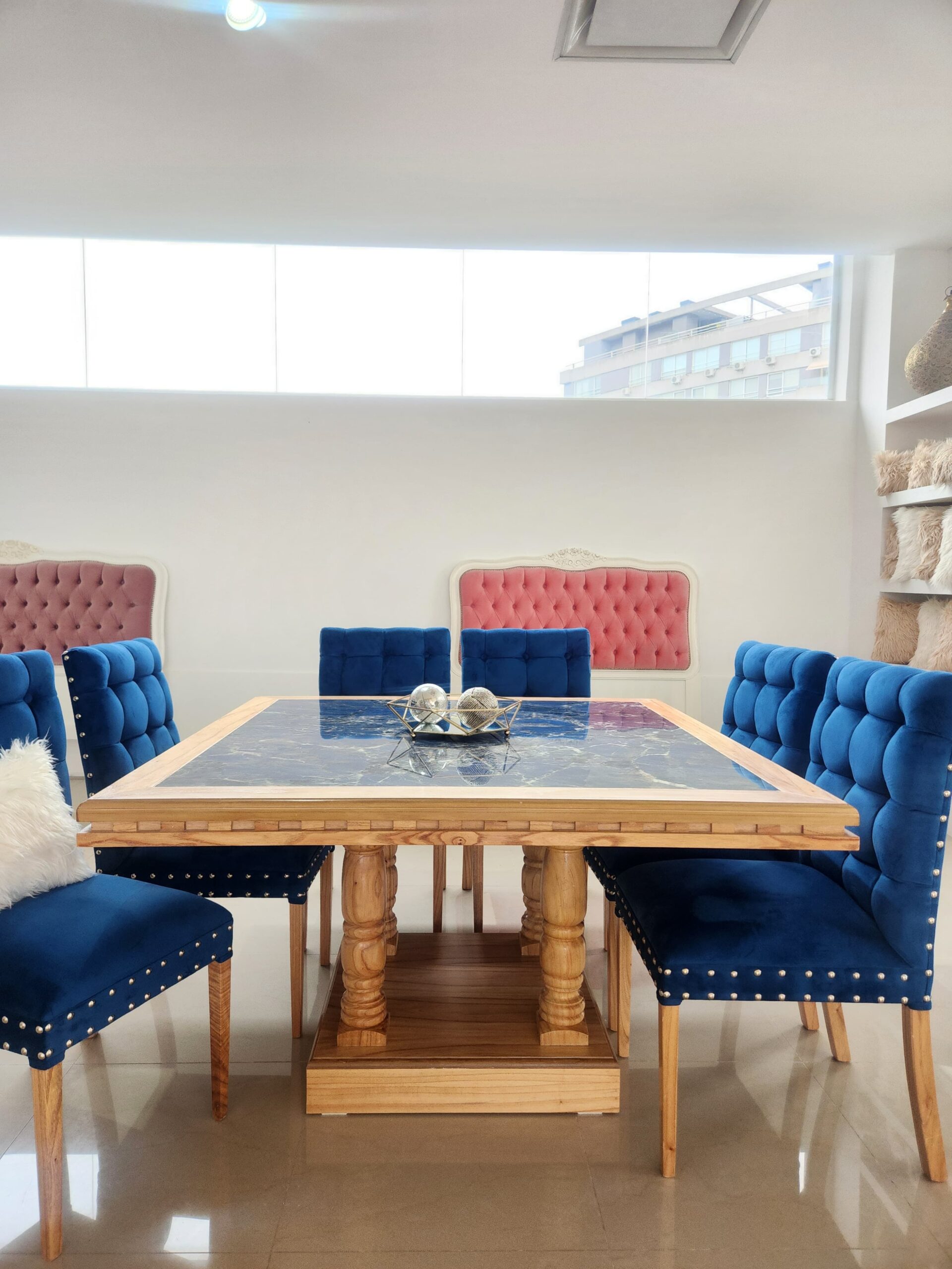 Mesa Restoration con porcelanato 210 x 110 mas 8 sillas curvas